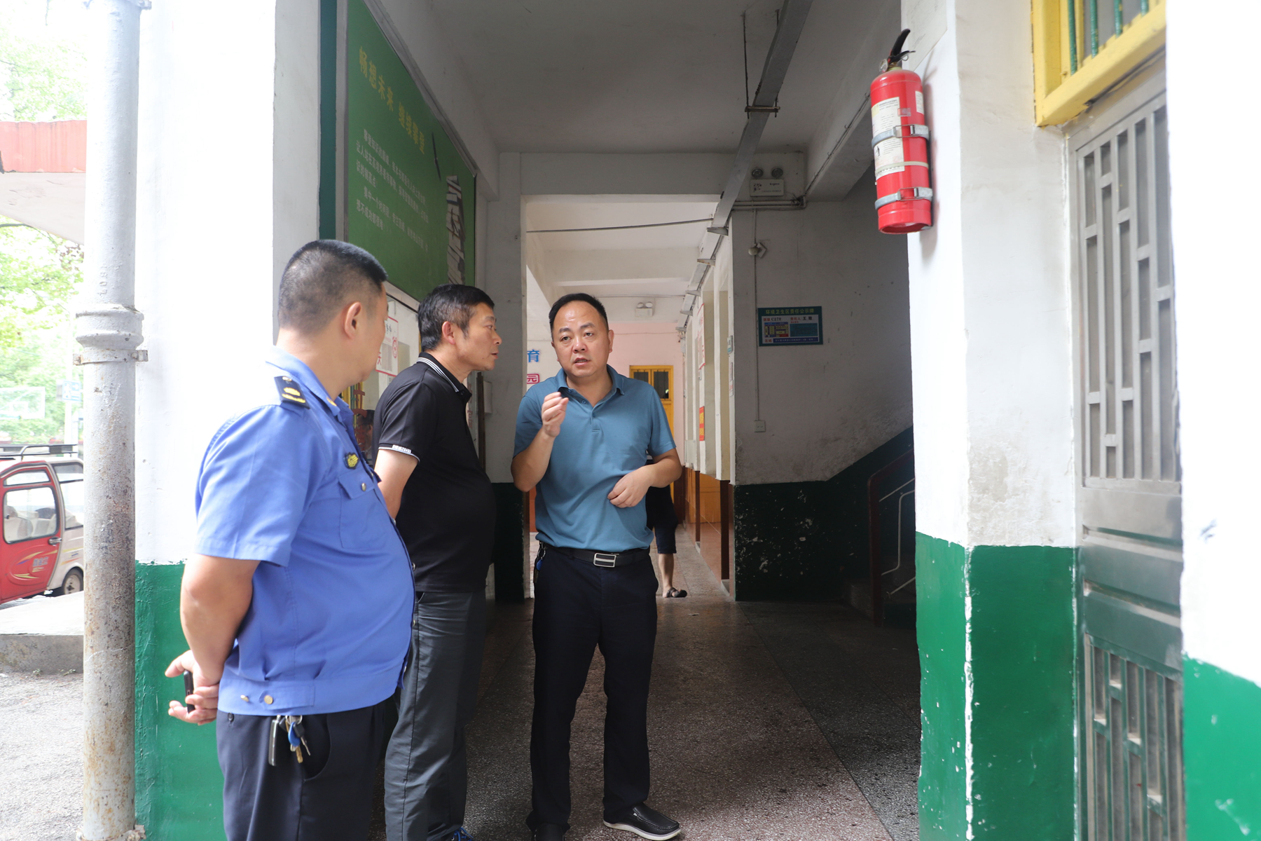 在桃花江镇第二初级中学北校区,6月1日创建曝光台曝光了学校围墙和校内社会主义核心价值观宣传栏破损的情况,如今过去了一个月,问题仍未整改。暗访中发现,校内宣传栏布满灰尘、地面杂草和树叶遍地,拖把随意挂在围墙上,消防器材检查记录表记录停留在2020年,2年未更新。林龙飞对学校负责人提出批评,按照校方的表态,林龙飞要求校方于明天全部整改到位,同时安排县创建办和县融媒体中心开展工作“回头看”。