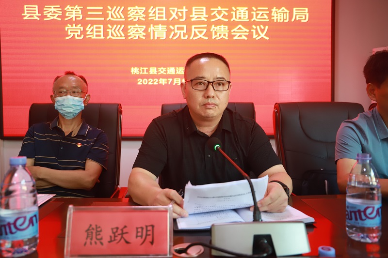 7月5日下午,县委第三巡察组对县交通运输局党组巡查情况反馈会议召开。会议传达了县委书记向荣关于巡察工作的讲话精神,县委常委、副县长熊跃明出席会议并讲话。