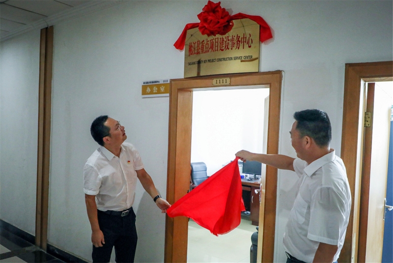 周登高、贺武彬共同为桃江县重点项目建设事务中心揭牌