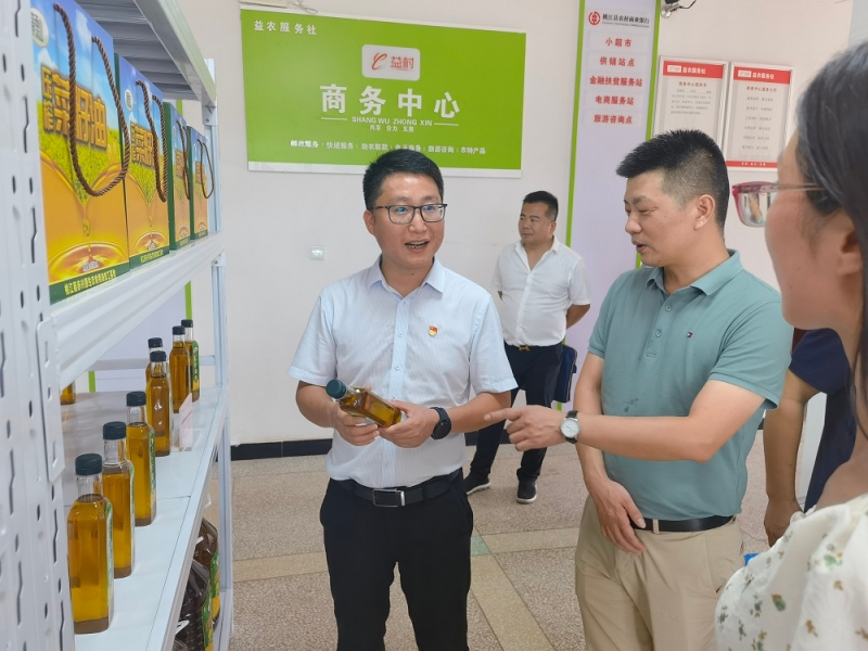 冷亮在赤塘村部商务中心了解村级集体经济情况