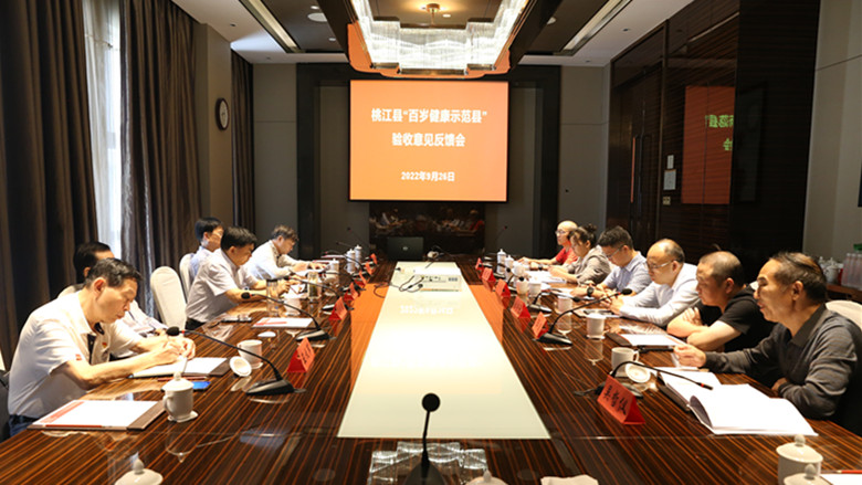 在桃江县“百岁健康示范县”验收意见反馈会上,冷亮就桃江县“百岁健康示范县”创建工作整体情况作了介绍。