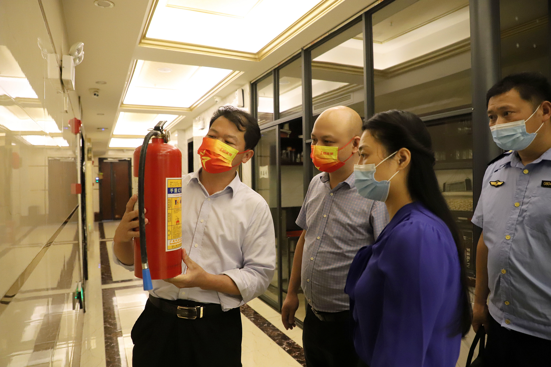 在罗溪苑私房菜KTV,陈丹查看了餐饮场所环境卫生状况、食品加工操作规范、从业人员健康管理、常态化疫情防控措施落实等情况,检查KTV安全消防设施设备、消防通道、安全管理制度。陈丹要求,要严格落实部门监管责任、企业主体责任,严把食品加工各环节,把好人员健康关、食材溯源关、加工操作关、消毒保洁关,保障“舌尖上的安全”。要严格落实消防安全制度,配齐配足消防器材,加强员工消防安全知识培训,提升场所安全防范能力。要做好场所每日消杀,落实疫情防控各项举措,筑牢安全防控屏障。