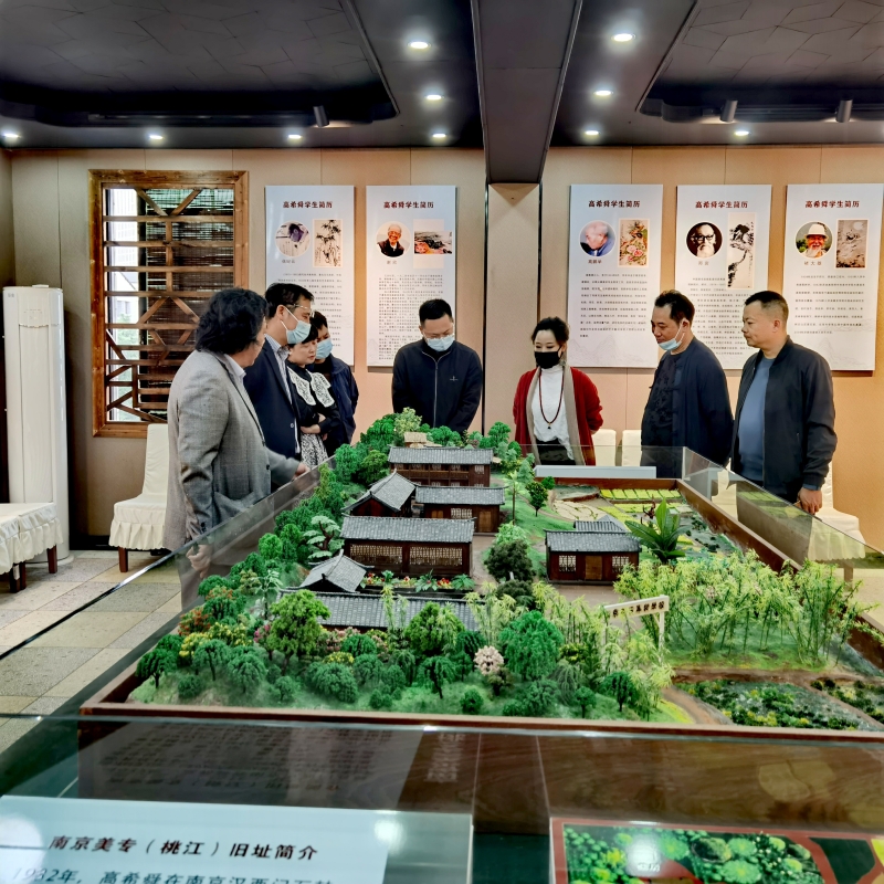 在南京美专展区,周登高驻足停留。南京美专于1933年创办于南京,1937年淞沪会战,高希舜等人迁校至老家桃江浮邱山乡人形山村办校,培养了莫立唐、王憨山、符竹书等著名书画家200余名。之后,周登高前往人形山村原南京美术专科学校旧址实地进行了调研。
