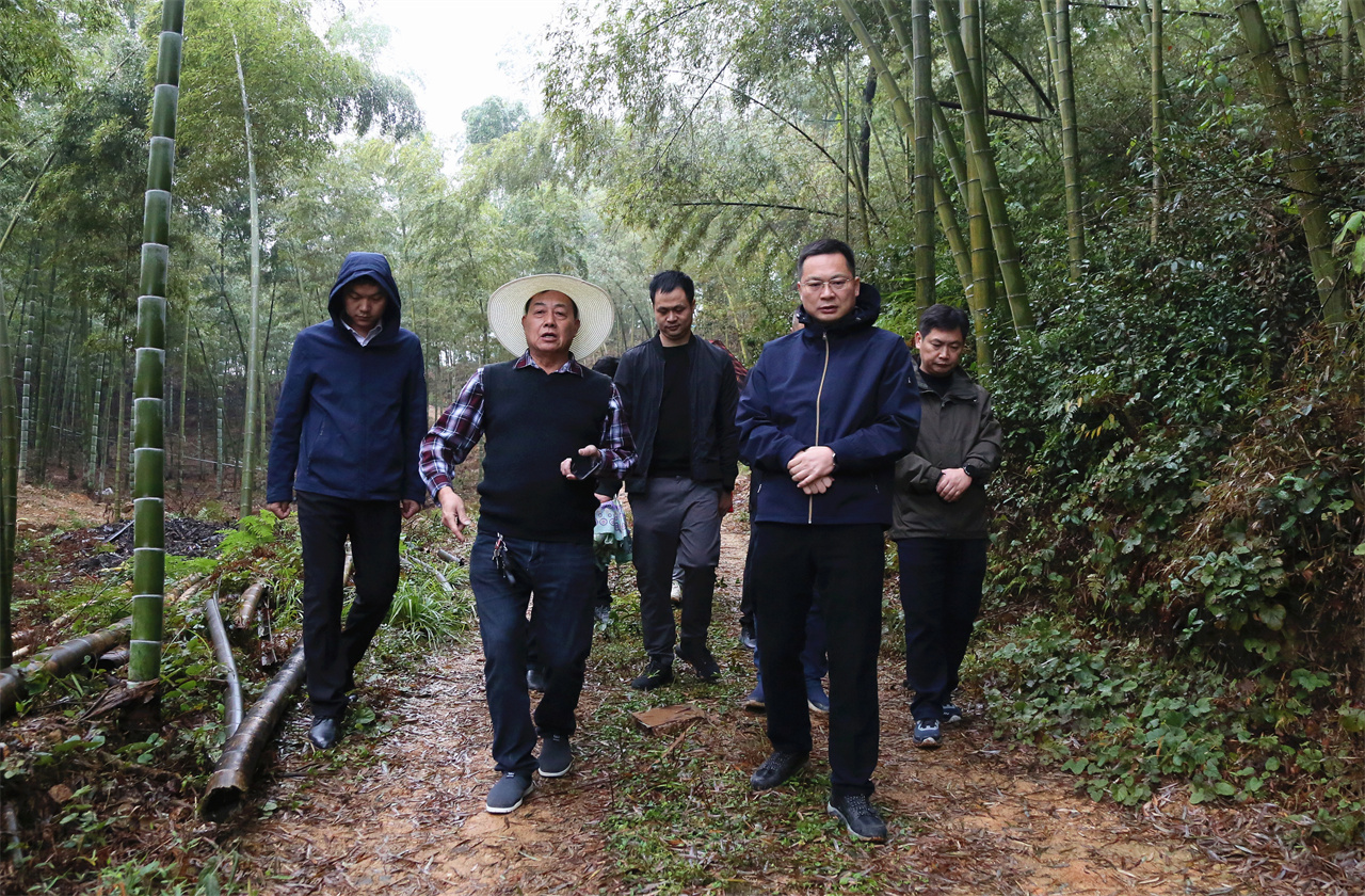 在鸬鹚渡镇憨哥竹笋专业合作社,周登高实地踏勘合作社竹笋核心示范基地,详细询问了解基地建设进度、竹笋用林培育技术、合作社经营模式及发展规划等情况。他希望基地立足资源优势,遵循高标准规划建设,提升基地发展规模化、集约化水平,发挥好示范基地的辐射带动作用,以助推桃江竹产业高质量发展。