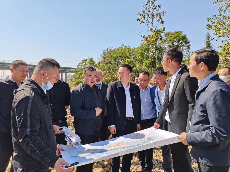 向荣、周登高实地踏勘了桃花江流域生态治理项目一期,查看了项目现状、项目规划、空间结构布局、重要节点设计,了解道路、水利、生态修复及水环境治理、景观建设等具体策划思路,并就项目建设与相关责任部门进行现场研究探讨。
