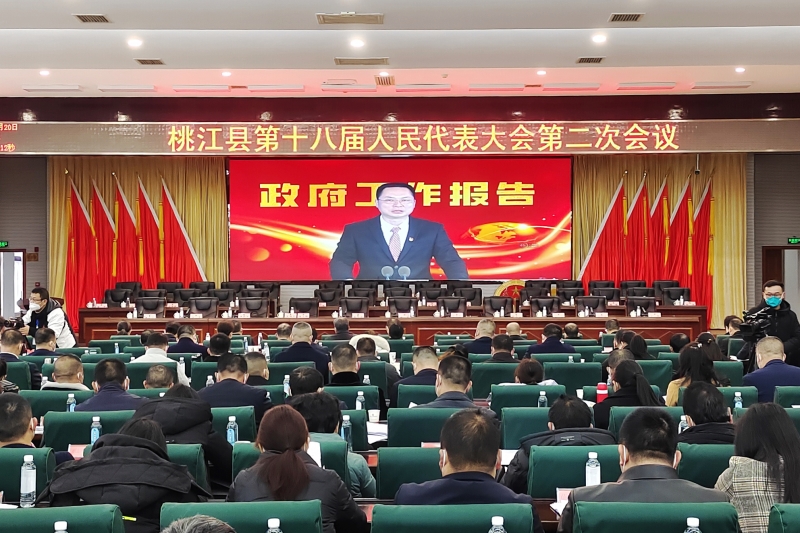 12月20日上午,桃江县第十八届人民代表大会第二次会议在县党政大楼附属楼三楼开幕。县委副书记、县长周登高以视频的形式向大会作政府工作报告,县人大常委会主任伍令贤作人大常委会工作报告,县人大常委会副主任赵立峰主持并宣布大会开幕。
