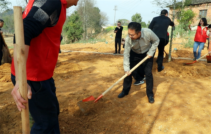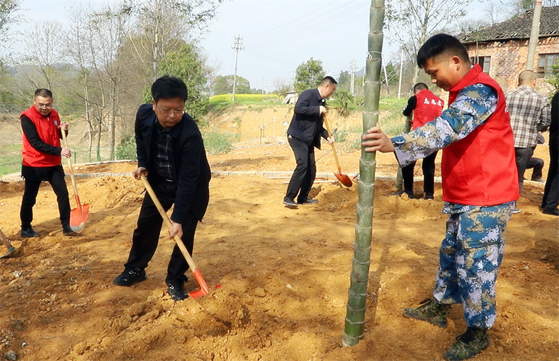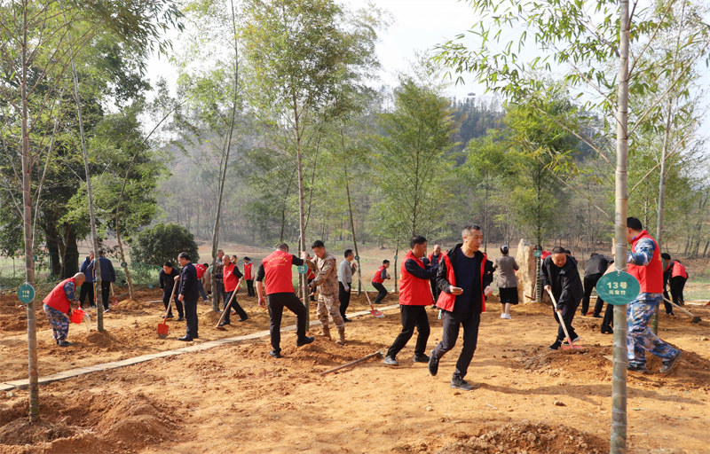 种植间隙,向荣详细了解了竹木的生长习性、后期养护和经济价值等情况,并询问了解全县植树造林、生态建设等相关工作。他叮嘱县林业局和乡镇负责人,要以“绿水青山就是金山银山”理念为指引,抢抓春季造林绿化的有利时机,广泛宣传动员群众参与到“爱绿、植绿、护绿”的行动中。同时,要把植树造林与群众增收、壮大集体经济有机结合起来,因地制宜探索既能提升生态建设、又能致富增收的新路子,切实把生态优势转化为发展优势。