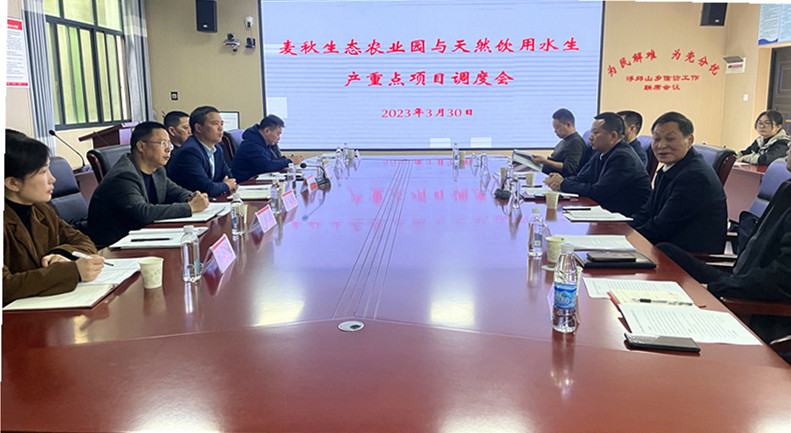 调度会上,胡志远听取了麦秋生态农业园与天然饮用水生产项目的进展和建设情况汇报,与会人员对项目建设中遇到的问题和困难进行了分析讨论,围绕下步如何加快项目建设,大家集思广益、积极发言。随后,胡志远实地察看了项目进展情况,听取了项目负责人对项目情况的介绍及配套设施的规划安排。