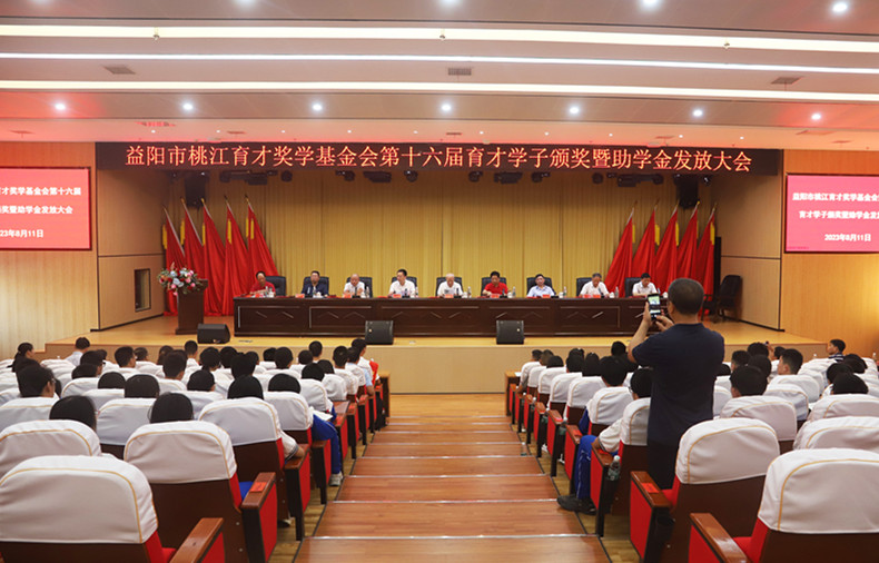 会议宣读了《益阳市桃江育才奖学基金会第十六届育才学子获奖通报》和2023年育才奖学基金会资助学生名单。对夏晨曦等10名2023届高考成绩优秀者给予每人1万元的奖励;继续对吴琲等30名2022、2021、2010届育才奖学金获得者给予每人1.5万元的奖励;对王昕等29名获得往届育才奖学金并考上研究生的同学给予每人1.5万元的奖励;对10位家庭困难成绩优异的学生每人给予1万元的资助。共发放奖(助)学金108.5万元。