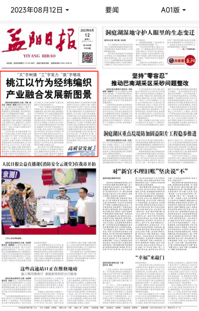 8月12日益阳日报头版头条报道桃江竹产业融合发展