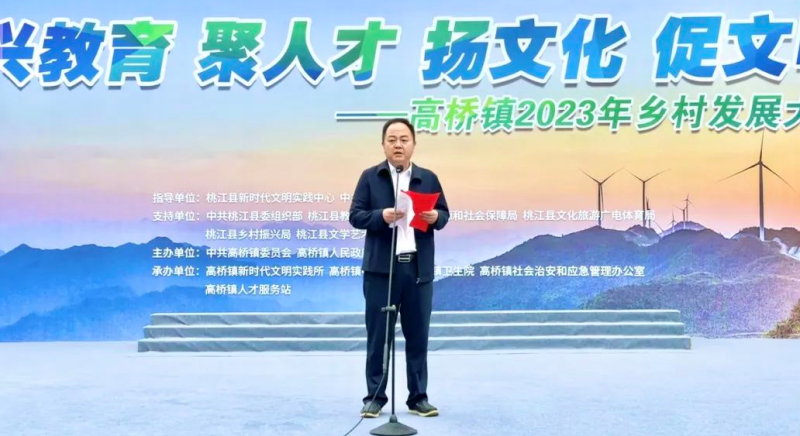 林龙飞在讲话中指出,举办高桥镇乡村发展大会,共话家乡发展、共谋教育事业、共商文化振兴、共助乡村振兴,既是贯彻落实习近平总书记关于全面推进乡村振兴重要论述的具体实践,更是推动桃江、推动高桥经济社会高质量发展的重要举措。他希望各有关县直部门切实推动优质文化资源和文化服务向基层倾斜,以更高的标准、更细的举措提供更为完善的公共文化服务。他呼吁各位在外乡贤、成功人士、爱心人士继续关心支持桃江、支持高桥的发展,共同谱写建设富饶美丽幸福新桃江、新高桥的崭新篇章!