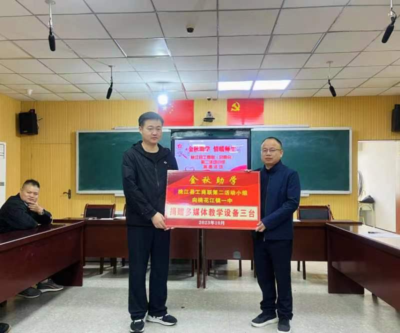 10月13日上午,县工商联(总商会)第二活动小组的企业家和团县委工作人员前往桃花江镇一中开展“金秋助学”送温暖活动,以实际行动为我县教育事业添墨助彩。县政协副主席、县工商联主席董佳出席。