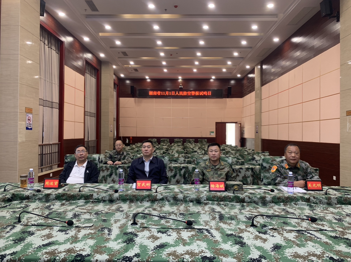 11月1日是湖南省防空警报试鸣日。当天上午,桃江县开展防空警报试鸣应急演练活动。县委常委、常务副县长贺武彬,县委常委、人武部政委杨海斌参加活动。