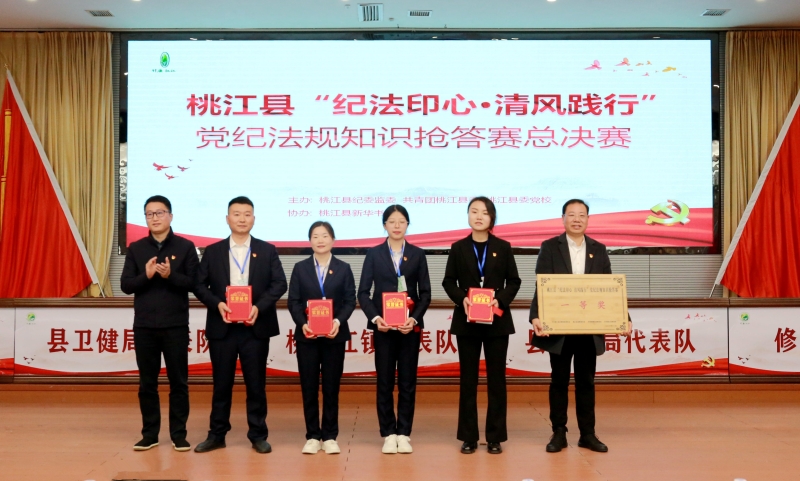 在各个环节中,选手们平稳发挥,依靠平时扎实的积累,奋勇争先、踊跃抢答,6支队伍你追我赶,比分交替上升,竞争十分激烈,台上选手精彩作答,台下观众掌声不断,现场氛围热烈。经过激烈角逐,最终县卫健局代表队获得一等奖;修山镇代表队、县住建局代表队获得二等奖;县市监局代表队、大栗港镇代表队、桃花江镇代表队获得三等奖。