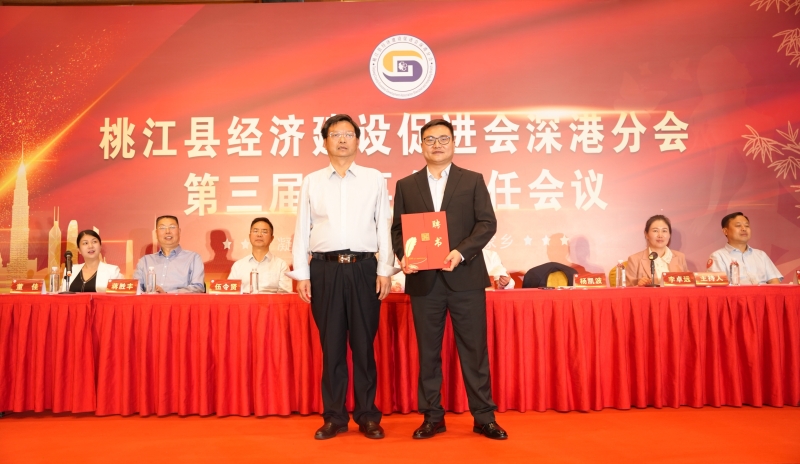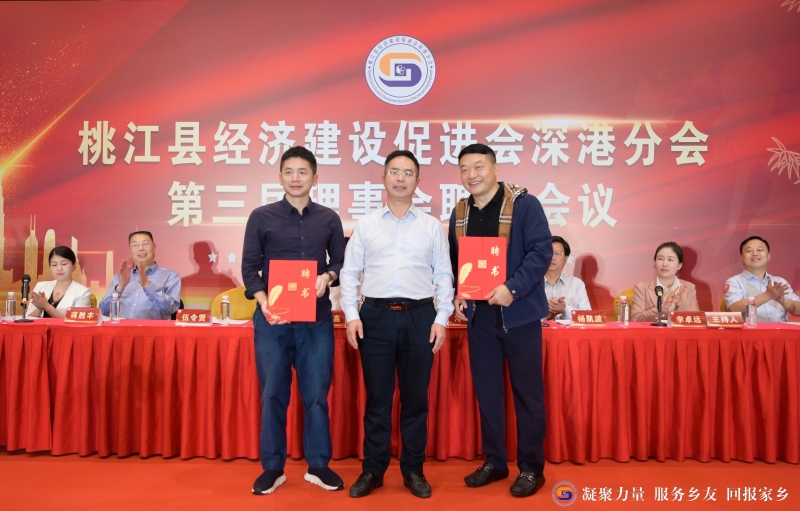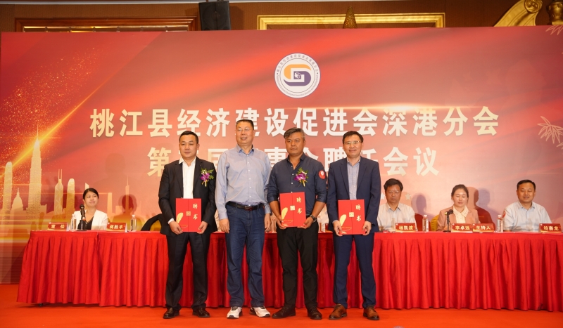 会上,董佳宣读《桃江县经济建设促进会关于聘任深港经促分会第三届理事会顾问、正副理事长、正副秘书长、常务理事的通知》文件;周登高为桃江县经济建设促进会深港经促分会授牌,冷亮为深港经促分会顾问颁发聘书 ,伍令贤为深港经促分会名誉理事长颁发聘书,杨凯波为深港经促分会理事长颁发聘书,蒋胜丰为深港经促分会常务(执行)副理事长、秘书长颁发聘书,符赛龙为深港经促分会副理事长颁发聘书。