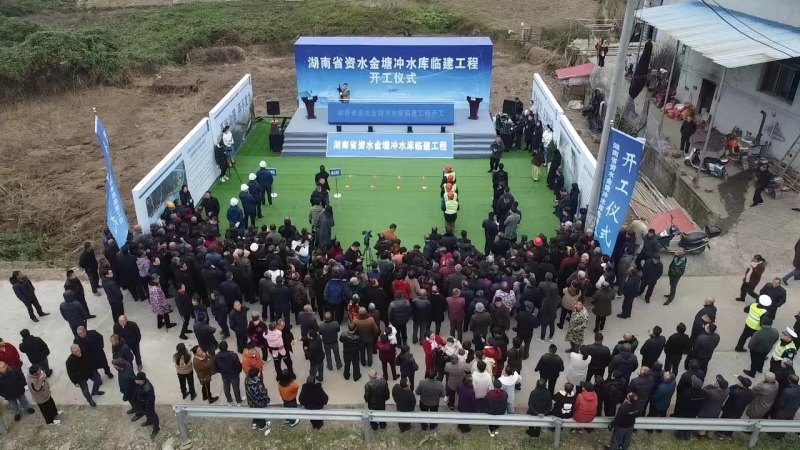 11月30日上午,湖南省资水金塘冲水库临建工程开工仪式在武潭镇善溪村举行。市政府副秘书长黄劲宣布该工程开工建设。