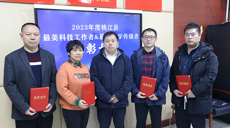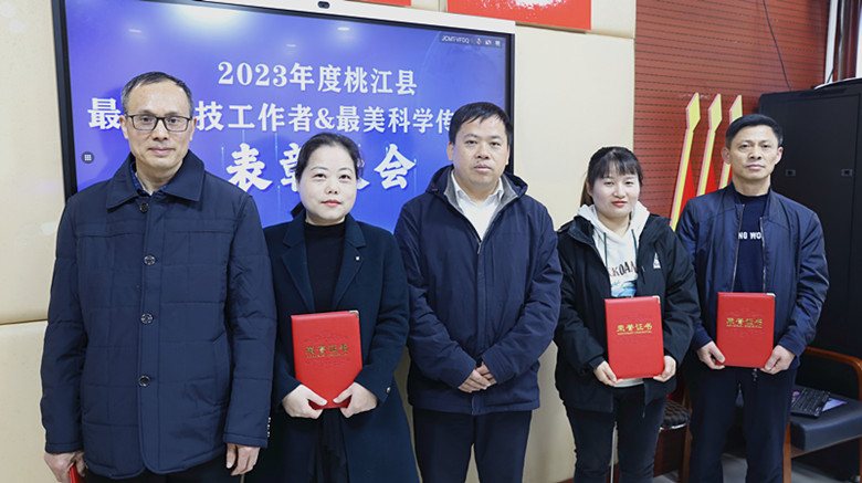 会议宣读了关于2023年桃江县“最美科技工作者”“最美科学传播者”的表彰通报,童春义代表县政府向14位最美科技工作者和最美科学传播者颁奖。