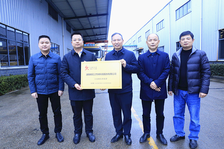 日前,受工业和信息化部委托,副县长曾国栋和县科工局负责人来到桃花江竹材科技股份有限公司,向该公司颁发专精特新“小巨人”企业荣誉牌匾。