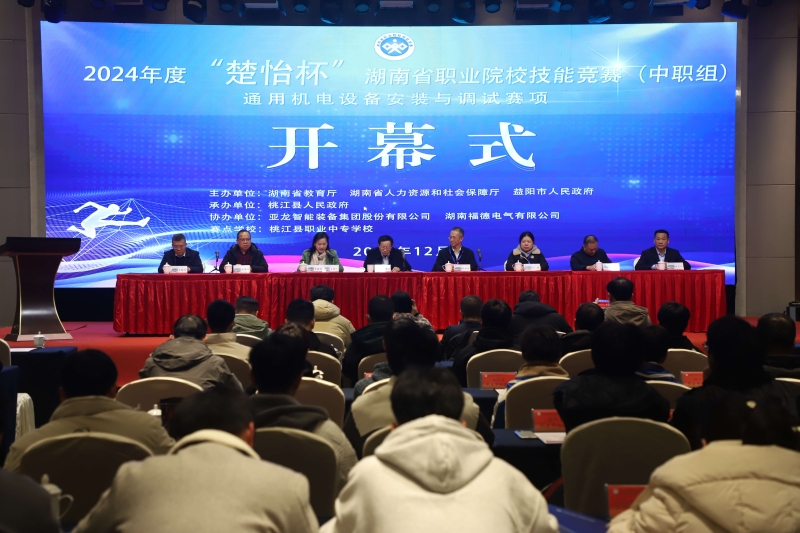 12月15日下午,2024年度“楚怡杯”湖南省职业院校技能竞赛(中职组)通用机电设备安装与调试赛项开幕式在大汉华美达大酒店举行。市政府副厅级干部喻国良宣布开幕,副县长龚胜芳主持开幕式,湖南省派赛点第一副主任戴松林,省派赛项负责人方晖,以及来自全省各地的参赛选手、指导老师和裁判人员出席开幕式。