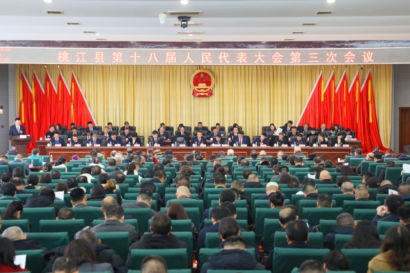12月20日上午,桃江县第十八届人民代表大会第三次会议在县城开幕。县委书记向荣出席,县委副书记、县长周登高作政府工作报告,县人大常委会主任伍令贤主持大会并宣布开幕。