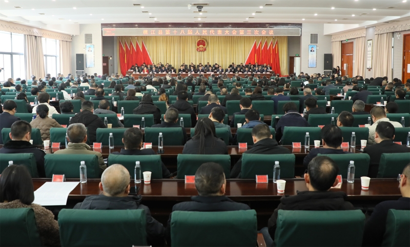 12月22日上午,桃江县第十八届人民代表大会第三次会议圆满完成预定的各项议程,在县城胜利闭幕。县委书记向荣讲话。