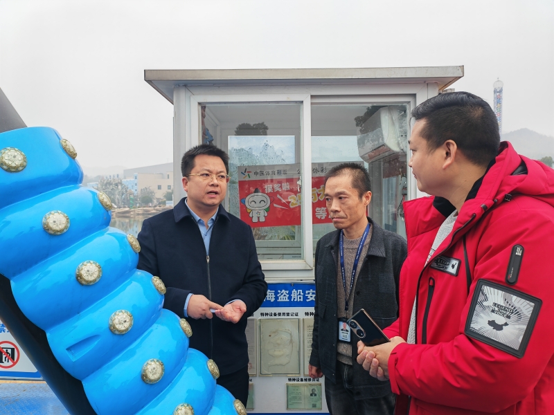 曾国栋在紫金湾欢乐王国检查游乐设施安全状况