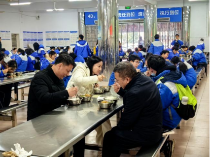 中午,龚胜芳来到食堂与师生一起共进中餐,并与学生交流,体验学生在校用餐情况。
