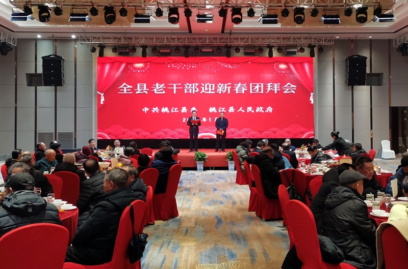 向荣代表县委、县人大、县政府、县政协向各位老领导、老前辈和全县广大老干部、老同志致以节日的问候和新春的祝福。他表示,新的一年,桃江将继续围绕县委“12345”工作思路、县政府“六七八九十”工作要点,着力推动“三农”工作提质增效、实体经济做大做强、民生福祉持续增进、发展环境不断优化、社会大局和谐稳定,推动全县各项工作进位争先,奋力建设富饶美丽幸福新桃江。同时,将一如既往地高度重视、扎实做好老干部工作,切实保障离退休干部的政治和生活待遇,为各位老领导、老前辈安享晚年、发光发热创造良好条件,也衷心希望各位老同志继续发挥政治优势、经验优势、威望优势,多为桃江经济社会发展贡献智慧和力量。