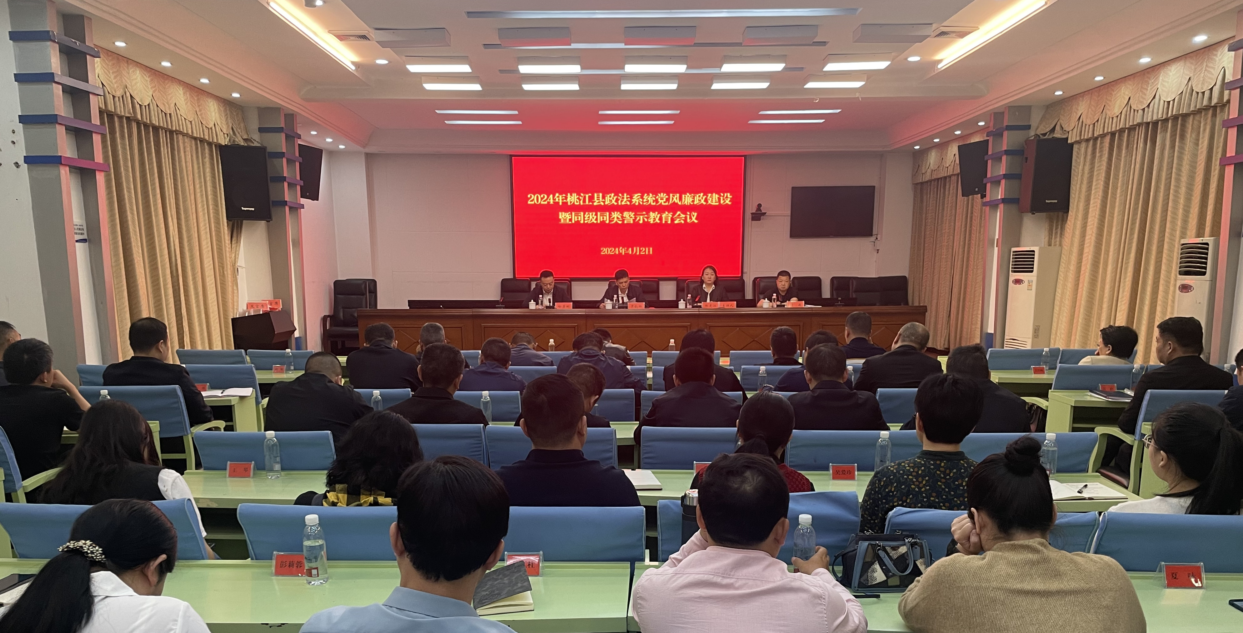 4月2日上午,2024年桃江县政法系统党风廉政建设暨同级同类警示教育会议在县党政大楼一楼电视电话会议室召开。县委常委、政法委书记罗歆辉出席并讲话,县人民法院院长张克江主持会议,县人民检察院检察长喻勇刚出席会议。
