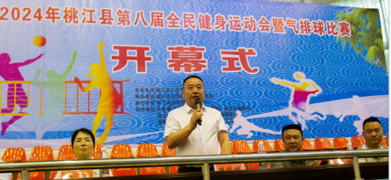 5月14日上午,桃江县第八届全民健身运动会暨气排球比赛在县体育馆举行。县委常委、副县长熊跃明宣布开幕。