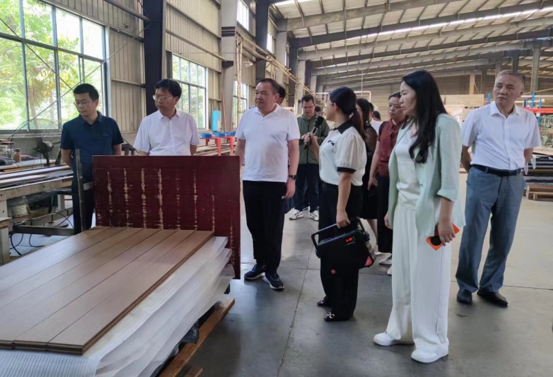 考察组在湖南桃花江竹材科技股份有限公司考察 李巍 摄