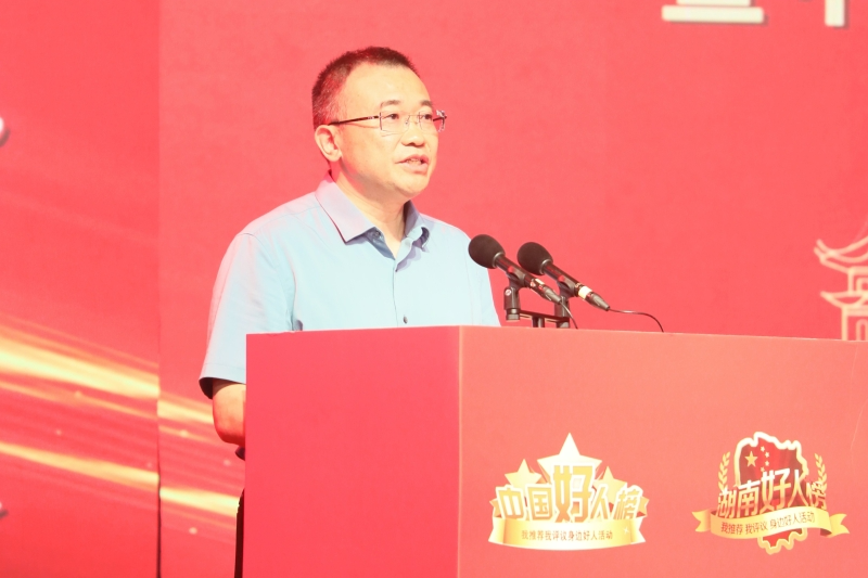 赵成新在讲话中指出,党的十八大以来,省委宣传部、省文明办认真贯彻落实习近平总书记关于加强社会主义精神文明建设的重要论述精神,充分发挥先进典型在培育践行社会主义核心价值观中的示范引领作用,在全省持续开展“湖南好人”推荐评议活动,深入挖掘社会各界的“凡人善举”,大力宣传群众身边的“榜样模范”。本次活动既是一场宣传湖南好人感人事迹的发布会,也是一堂交流“学好人、做好事”心得感悟的分享课,更是一次褒奖榜样模范的致敬礼。他希望全省各地各部门要落细落实《新时代公民道德建设实施纲要》的要求,广泛开展推荐发现好人、学习宣传好人、推崇礼遇好人的选树活动,大力营造见贤思齐、崇德向善、德行天下的浓厚氛围,引导带动广大干部群众向道德模范学习,向身边好人看齐,争做社会的好公民、单位的好员工、家庭的好成员,为建设富饶美丽新湖南提供坚强思想保证、强大精神力量和丰润道德滋养。