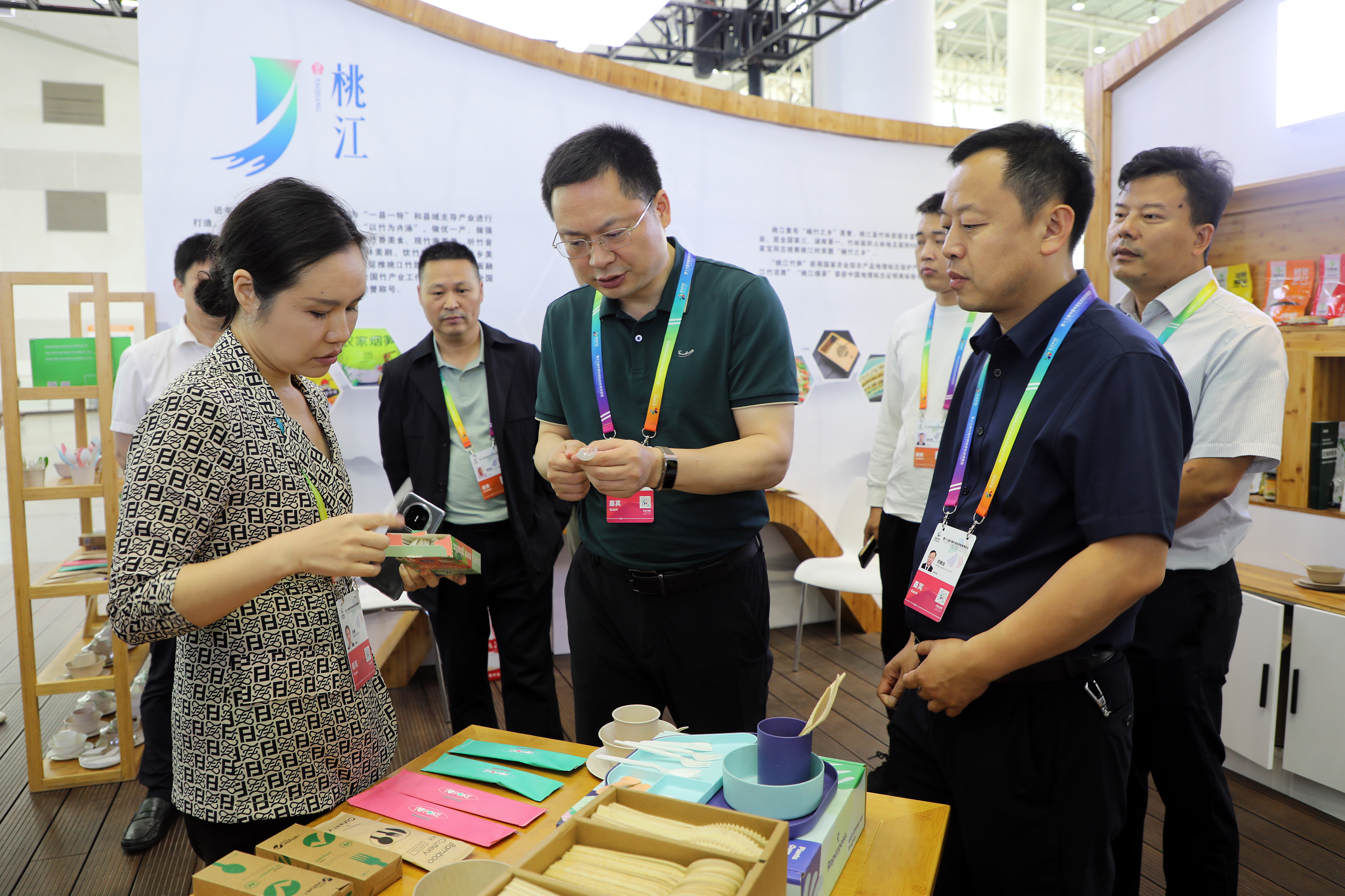 桃江竹产业主题特色馆亮相第十三届中博会 周登高巡馆