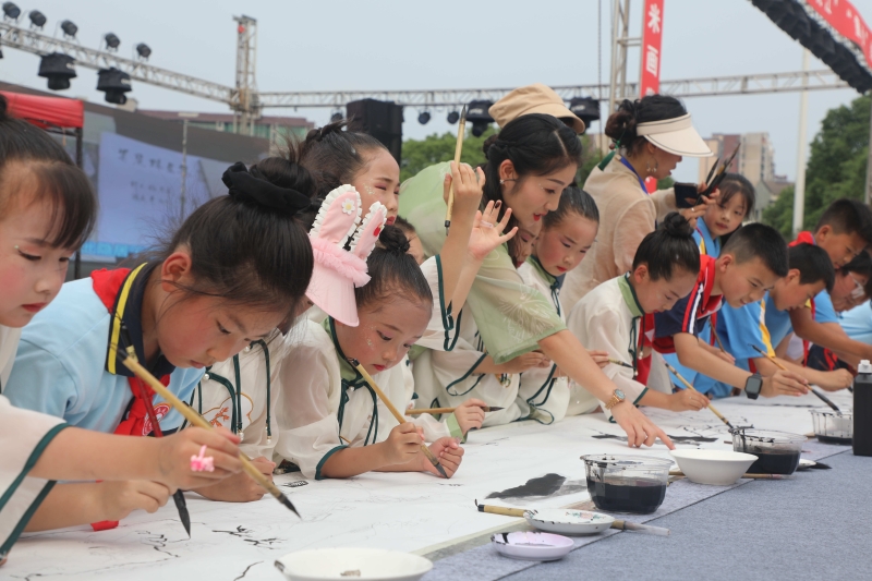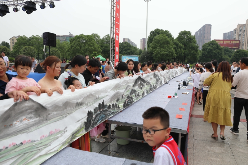 6月2日,“希舜艺术·水墨桃江”“童心”绘山河暨百人共绘百米长卷现场创作和书画展在县城金盆广场举行。本次活动由市文化馆、市美术家协会、市希舜书画艺术中心、县文学艺术界联合会等联合主办。县政协副主席、县工商联主席董佳出席活动。