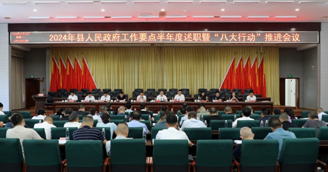 会上,部分单位、乡镇负责人上台发言,客观总结成绩,认真分析存在问题,提出下阶段努力方向;县实施“八大行动”联席会议办公室通报全县上半年实施“八大行动”工作情况;与会领导分别就所牵头的八大行动和政府工作要点任务进行点评,肯定上阶段工作成绩,指出存在问题并提出相关建议。