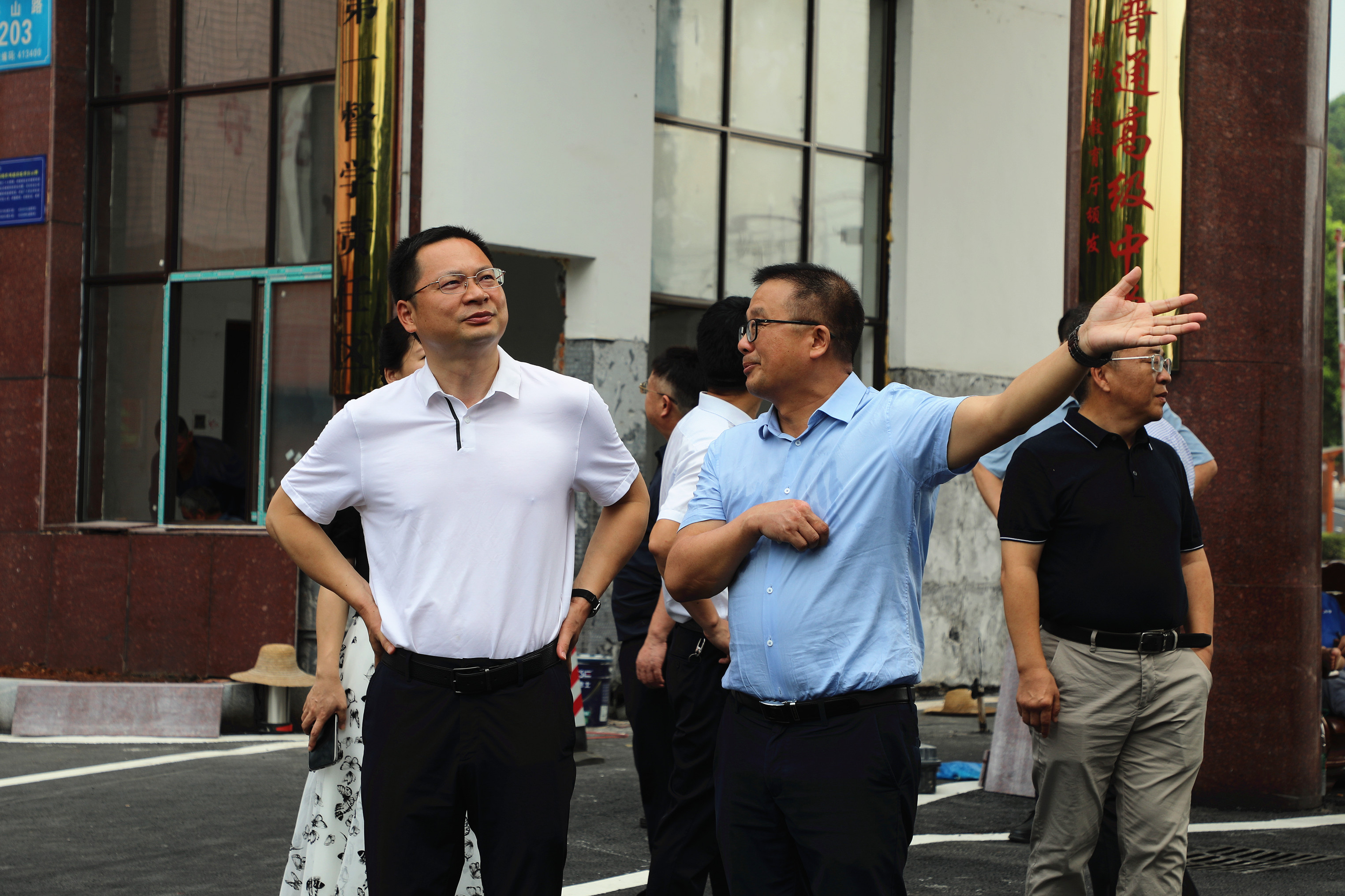 会前,周登高还先后前往县职业中专和桃江一中开展现场调研,与学校负责人深入交流,仔细察看校园环境、教学设施设备、建设施工现场等,详细了解学校教育教学、校园安全、配套设施建设等工作开展情况。