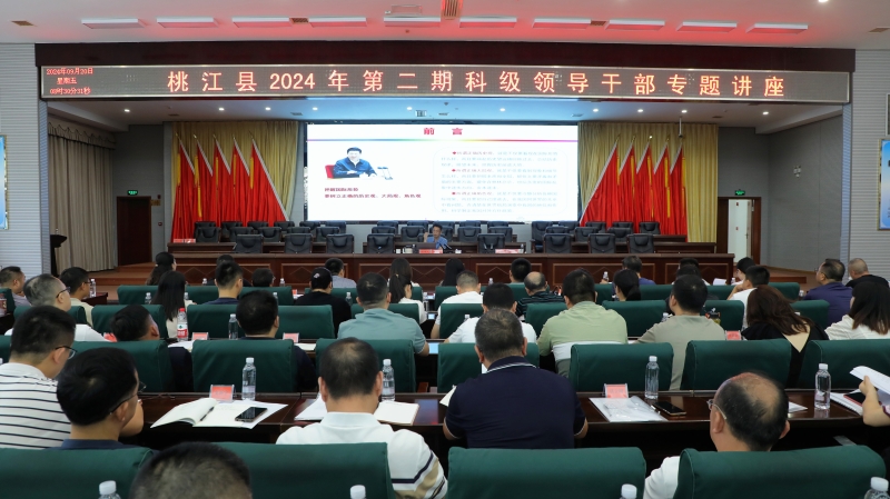 9月20日,桃江县2024年第二期科级领导干部专题讲座在县党政大楼附属楼三楼会议室开讲,2024年第二期科级领导干部专题讲座选修人员、2024年秋季科干班全体学员、县委党校教师共443人参加学习。