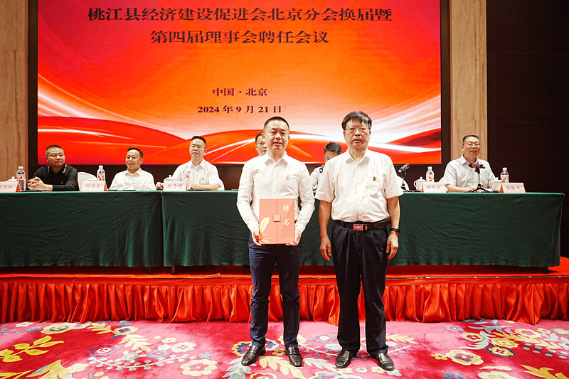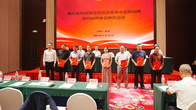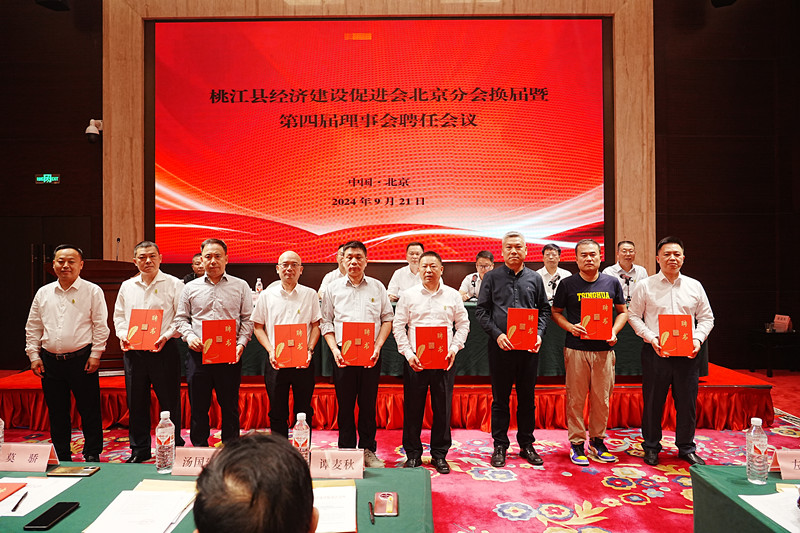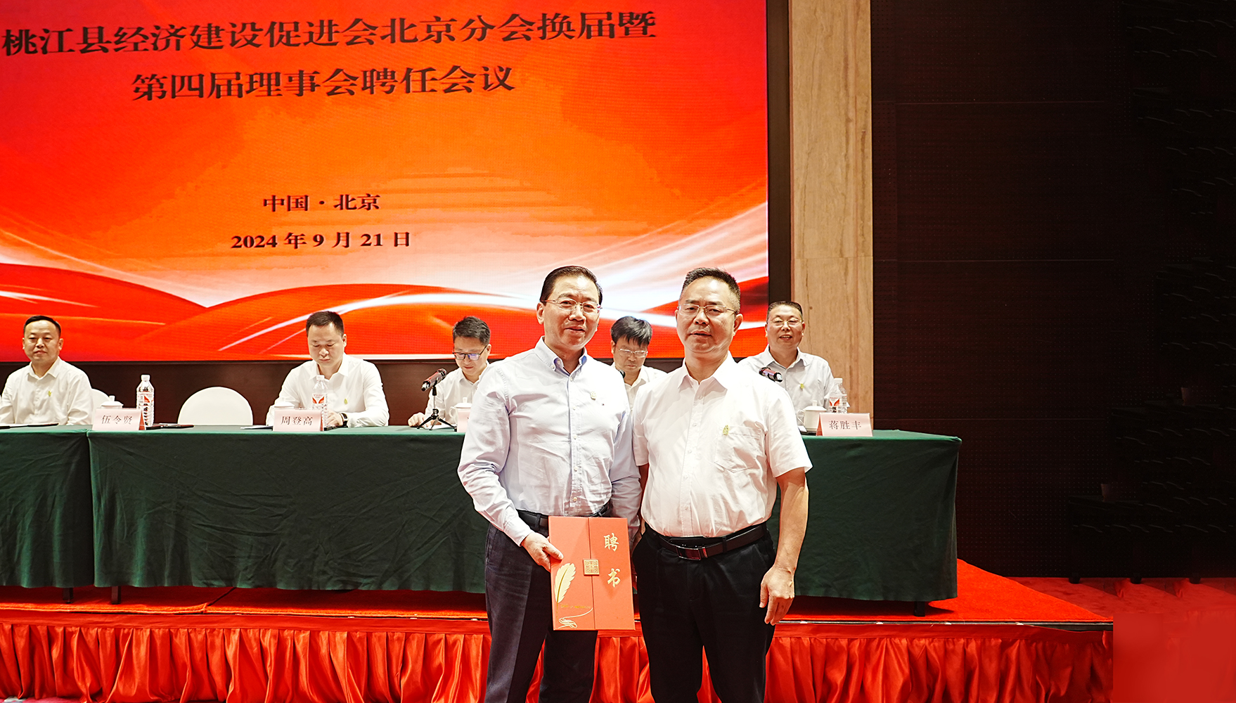 大会宣读了《桃江县经济建设促进会关于聘任北京经促分会第四届理事会成员的通知》。周登高、伍令贤、杨凯波、符赛龙分别为县经促会北京分会顾问、名誉理事长、理事长、副理事长和秘书长颁发聘书。