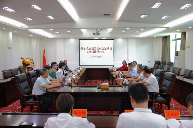 9月23日上午,巴黎残奥会冠军文晓燕回到家乡桃江,受到热烈欢迎,县委书记向荣,县领导伍令贤、于新胜、林龙飞、陈丹、文志军出席了欢迎座谈会。