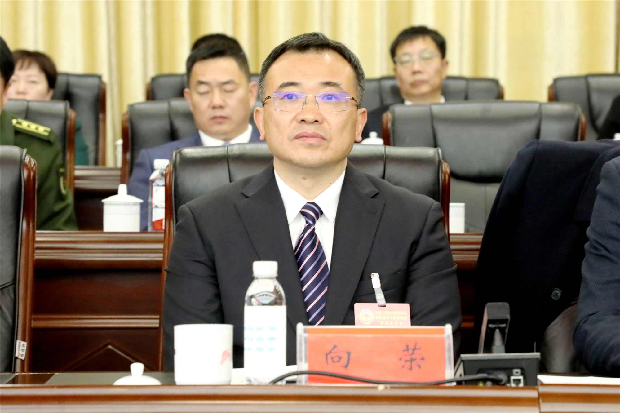 县领导向荣、周登高、冷亮、伍令贤、杨凯波、蒋胜丰、文志军、李卓远、董佳、夏末花和县政协秘书长左交在主席台前排就座。县委、县人大、县政府、县人武部在职实职县级领导,县人民法院院长,县人民检察院检察长应邀请出席大会。县政协副主席文志军主持闭幕式。