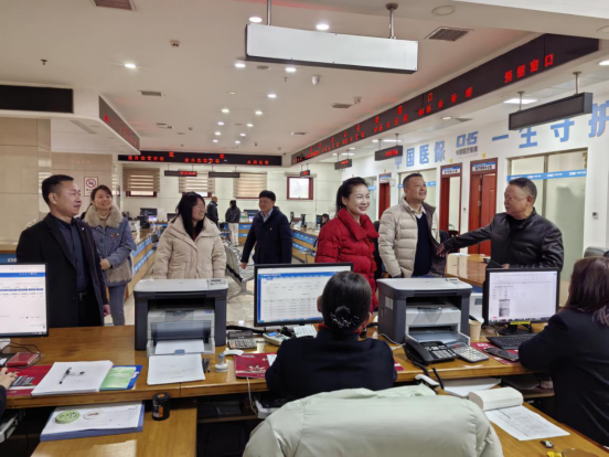 在医保经办大厅,龚胜芳和医保工作人员亲切交谈,详细了解医保窗口运行、业务办理和假期值班等情况,对医保经办窗口工作给予充分肯定,对基层一线工作人员过去一年辛勤付出表示衷心感谢,并勉励大家在乙巳蛇年,继续保持饱满的工作热情和奋发向上的工作状态,全心全意服务好办事群众,服务好两定机构。