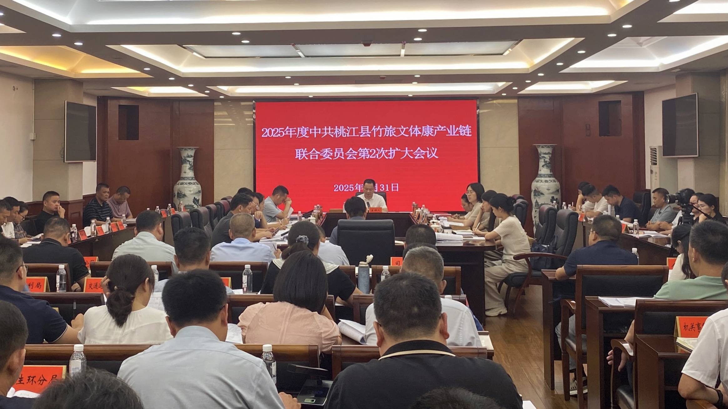7月31日下午,2025年度中共桃江县竹旅文体康产业链联合委员会第2次扩大会议召开。县委副书记、县长周登高主持会议,委员会全体成员及相关县级领导参加会议。
