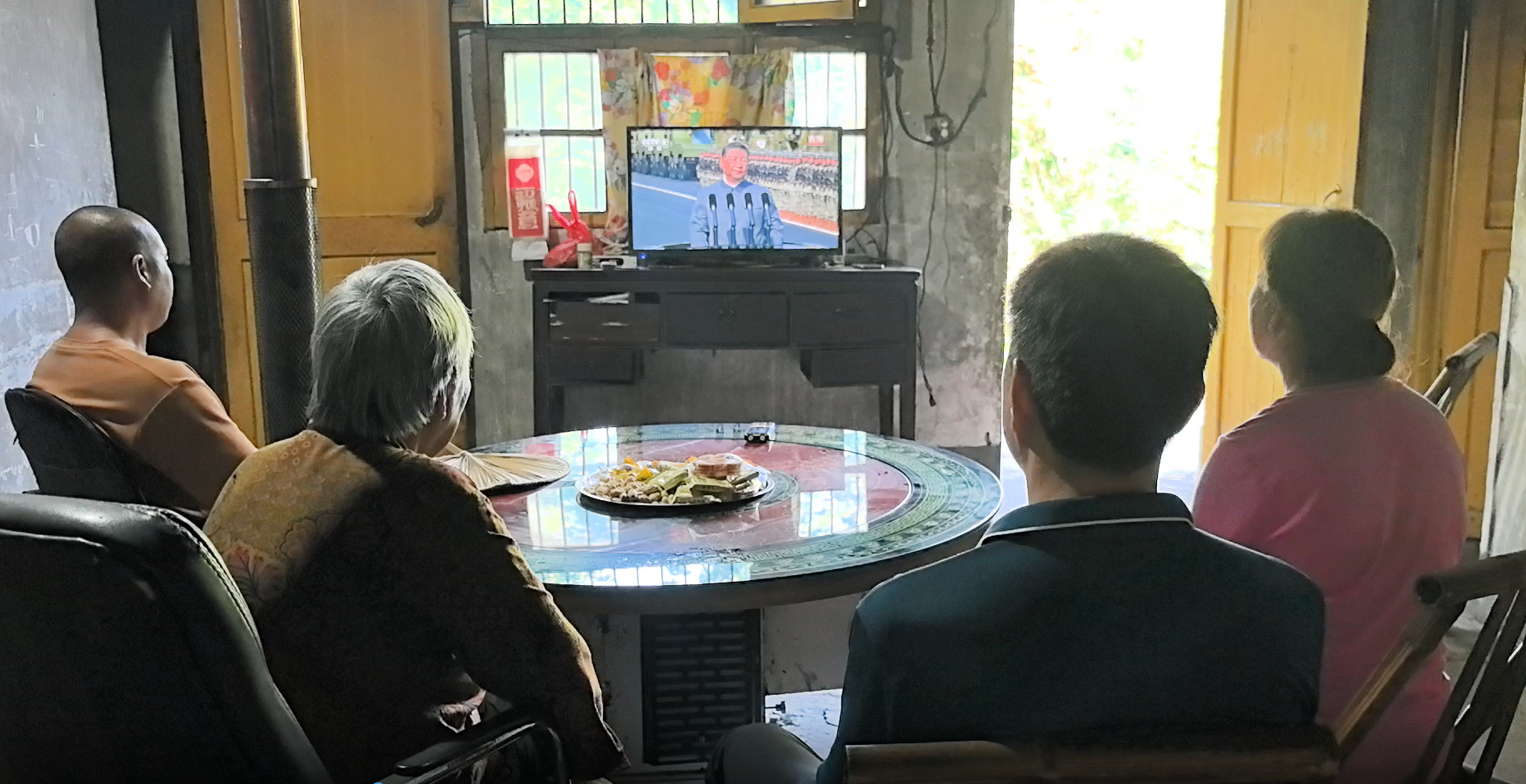 曹吉良的家属在一起收看九三阅兵 刘俊 摄