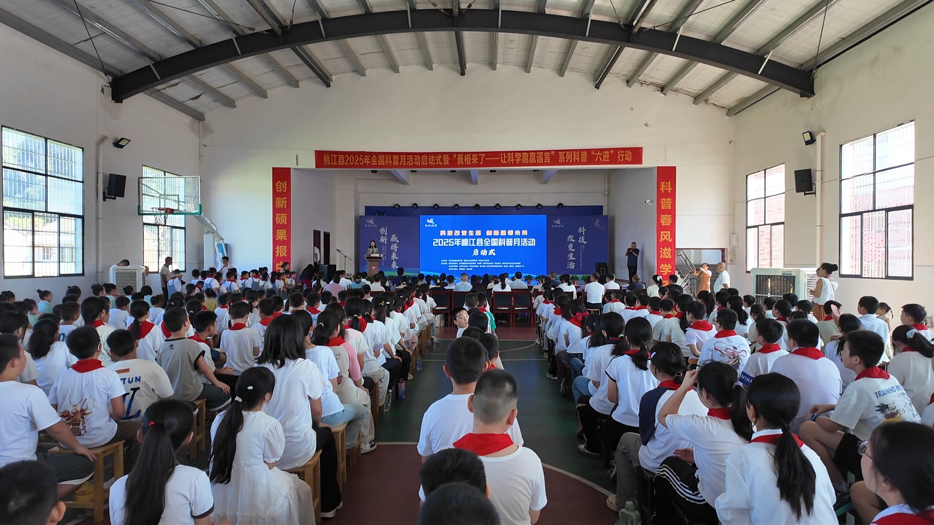 9月16日上午,桃江县全国科普月主场活动在修山镇三官桥小学正式启动。湖南省科技新闻学会理事长蔡建文、副县长陈丹出席活动。