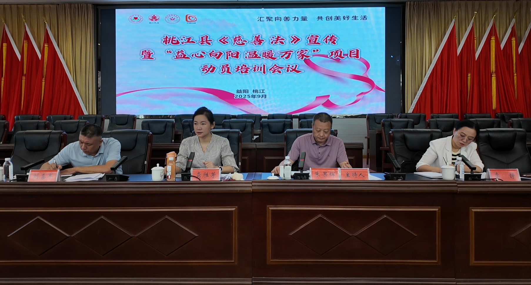 9月18日上午,桃江县2025年《慈善法》宣传暨“益心向阳 温暖万家”项目动员培训会议召开。副县长龚胜芳出席并讲话。