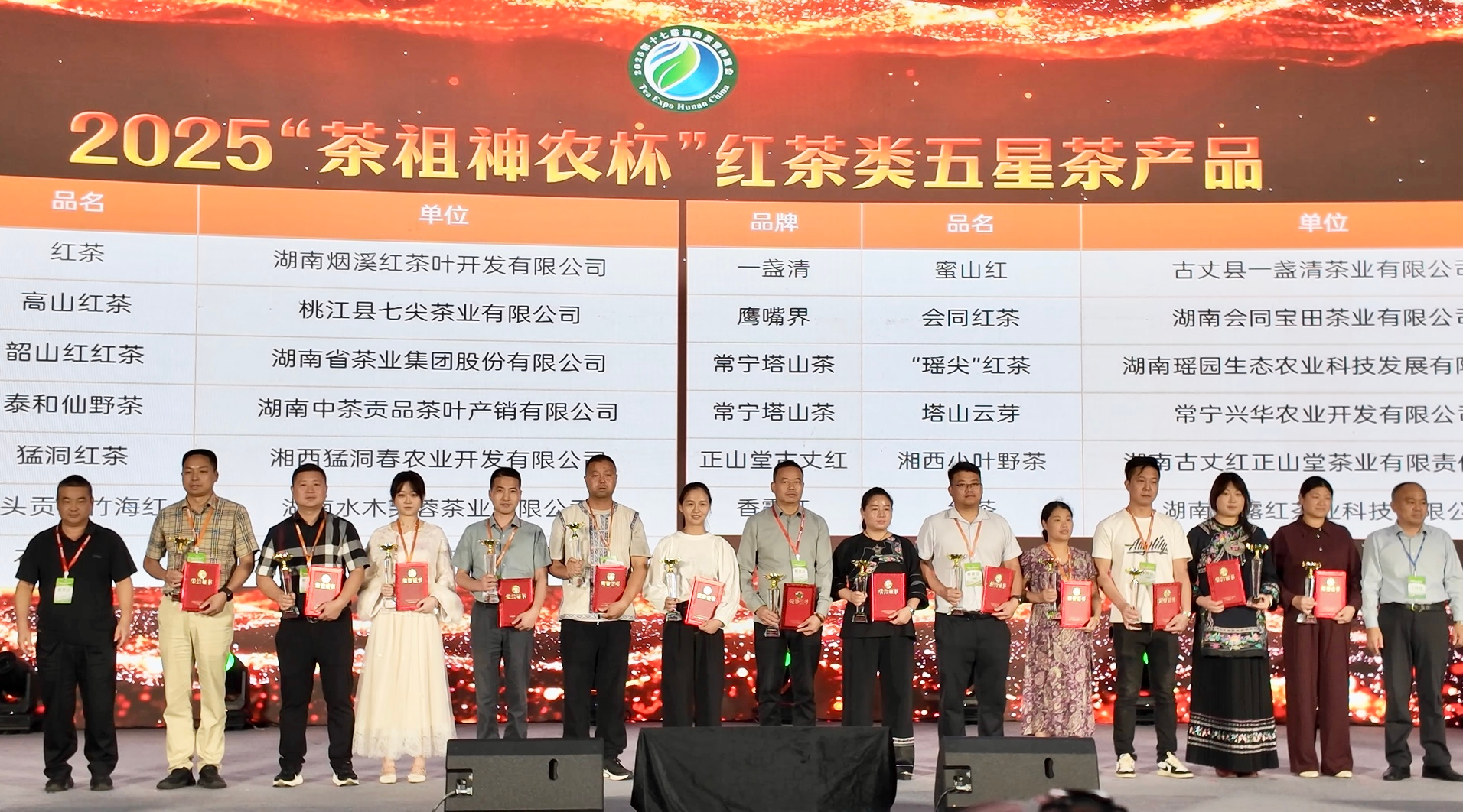当天,活动还宣布了2025第十七届湖南茶业博览会“茶祖神农杯”五星茶产品暨优秀组织奖名单。其中,县农业农村局获评优秀组织奖,桃江汇泉农业发展有限公司壹方春早绿茶、麓畔宁光红红茶分别获评绿茶、红茶类五星茶产品,桃江县七尖茶业有限公司老木盆高山红茶、桃花湖七尖高山天尖茶分别获评红茶、黑茶类五星茶产品。