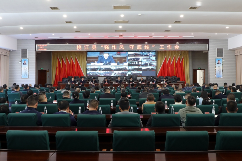 11月25日下午,县委书记周登高主持召开桃江县“强作风 守底线”工作会。会议以视频形式召开,主会场设党政大楼会议室,分会场设各乡镇视频会议室。县委、县人大、县政府、县政协在职实职县级领导在主会场参加会议。