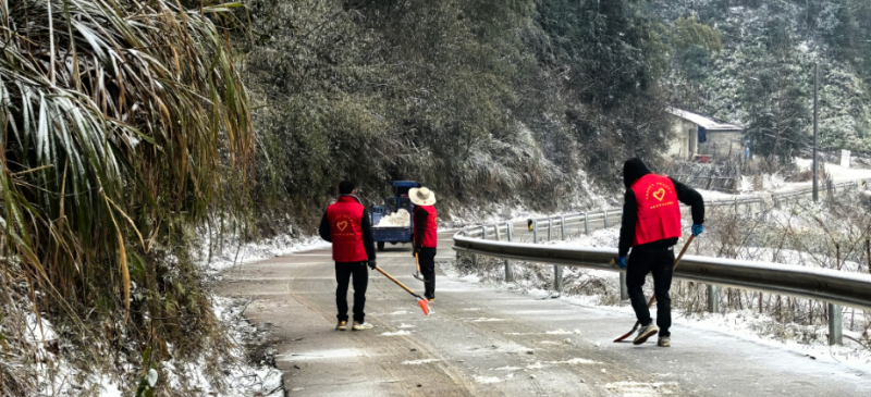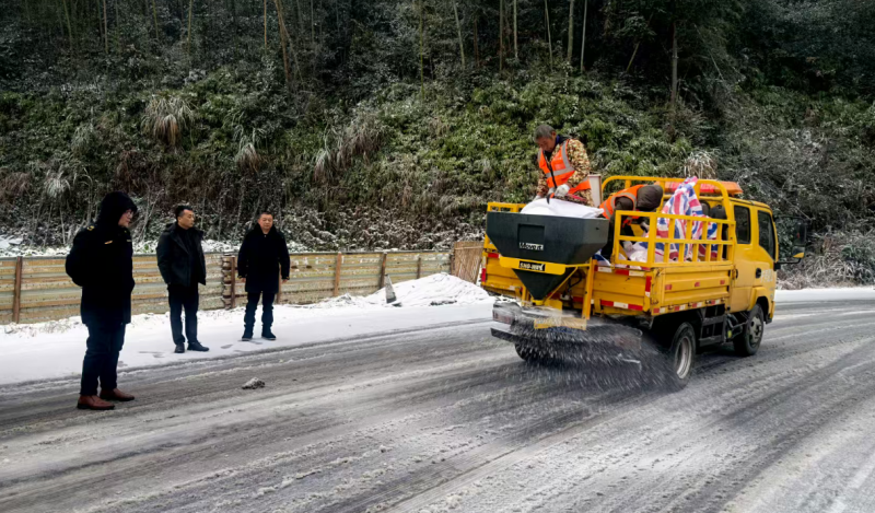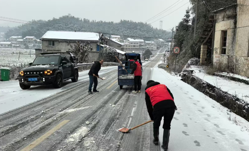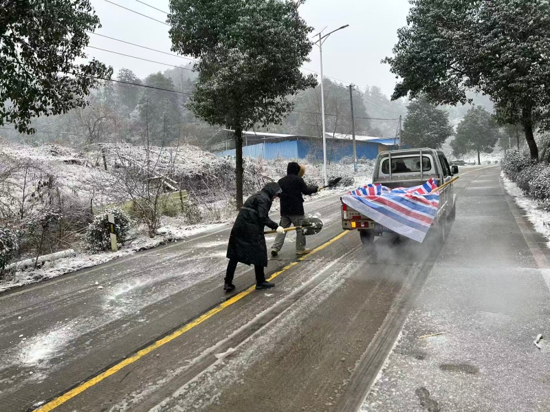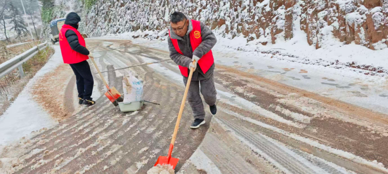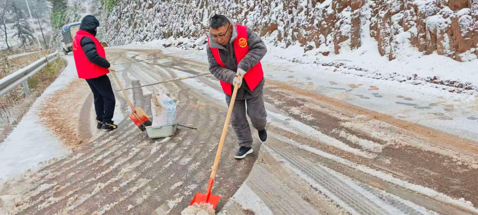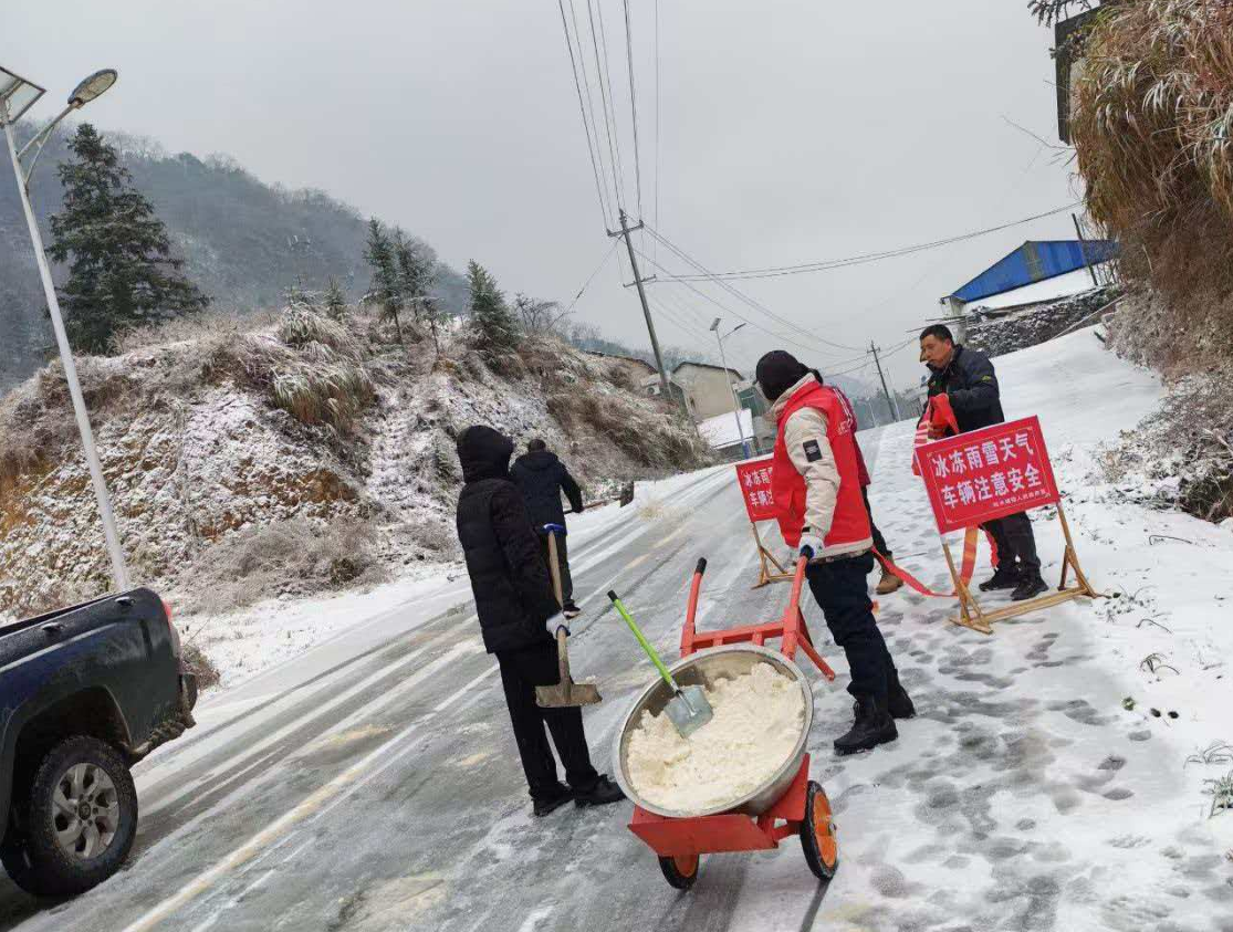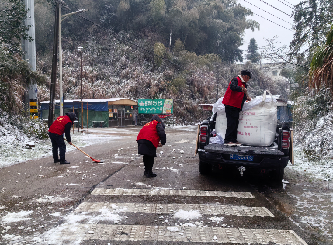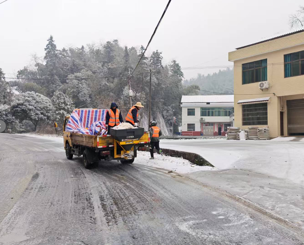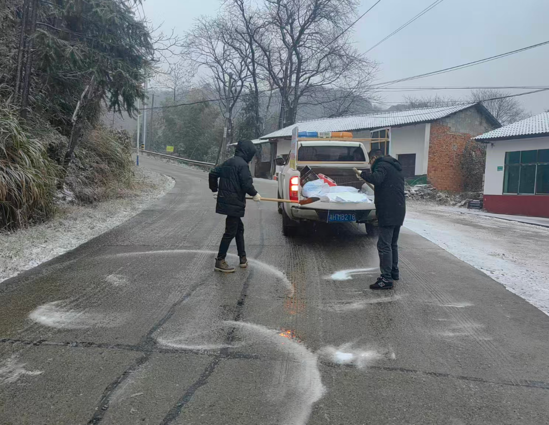 鲊埠回族乡军工嘴村路段撒盐除冰保障通 冷佳仪 摄