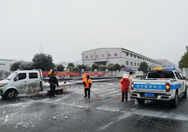 凌晨道路撒盐 县城管执法局 供图