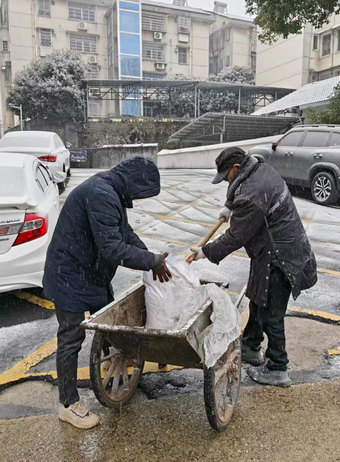 县住保中心在公租房小区撒盐清雪除冰
